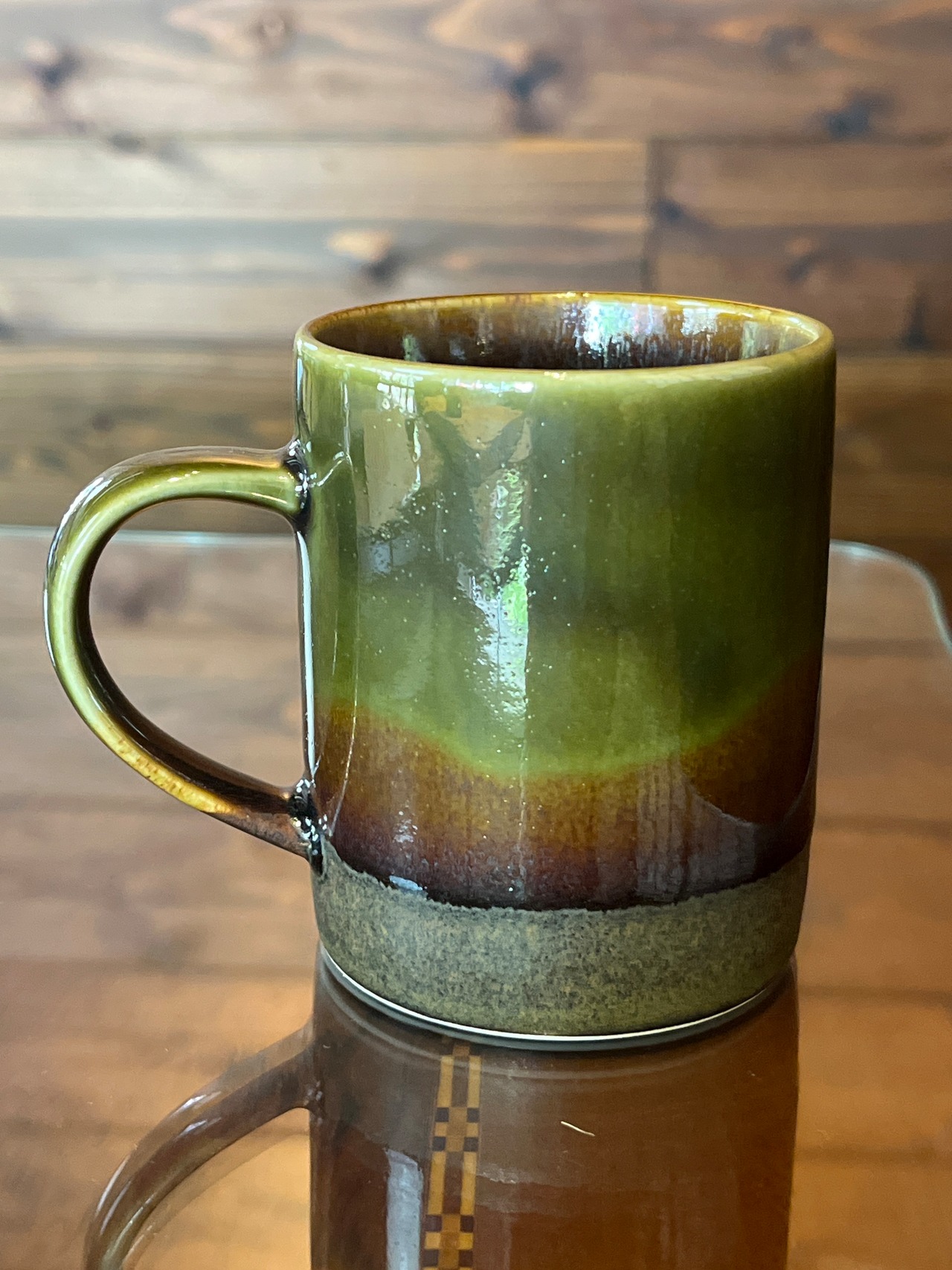 いろんな表情の釉薬の色がとても素晴らしいマグカップです