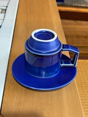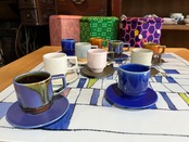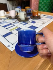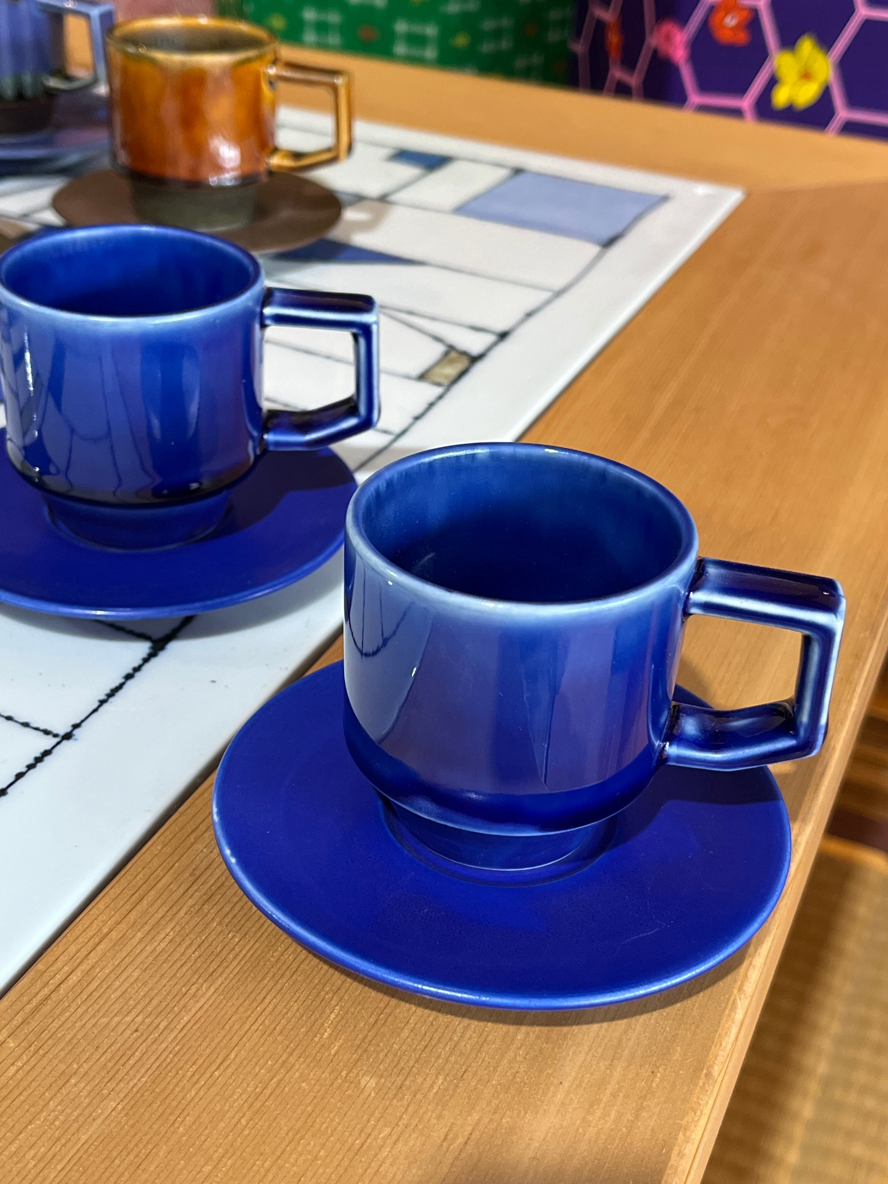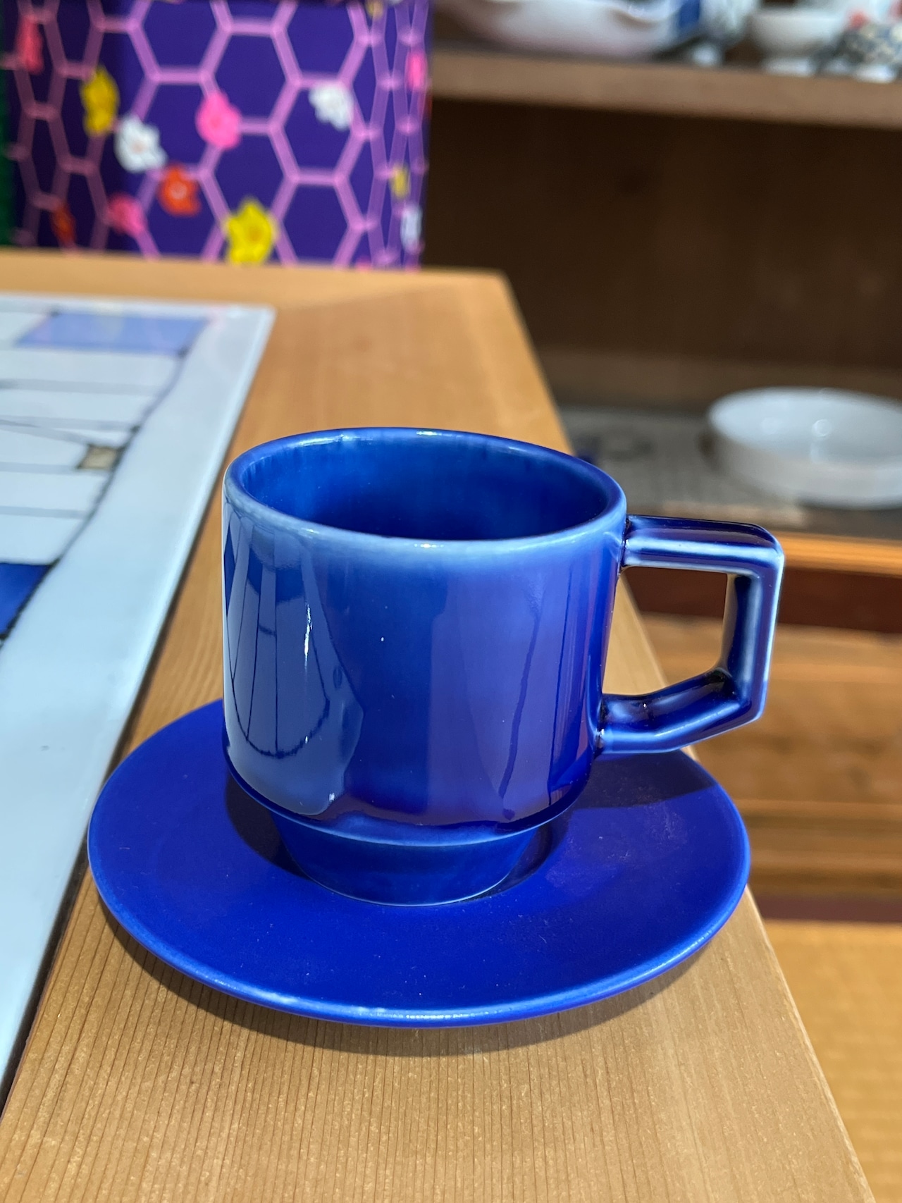 作家が一つ一つ手作りのため、釉薬の色合いが絶妙に温かく優しい雰囲気のデミタスカップ&ソーサーです